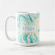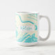 Eine stilvolle und raffinierte Tasse mit einem eleganten Marmormuster aus Imitat und wirbelfarbenen türkisblauen und cremefarbenen Tönen. Ein cremefarbener Rahmen mit goldgelbem Rahmen überlagert mit einem personalisierten Namen innen.
