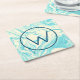 Cooles Marmordesign in Türkis und Creme Monogramm Rechteckiger Pappuntersetzer