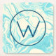 Ein eleganter und raffinierter Untersetzer in Monogramm mit elegantem Marmormuster aus Imitat und wirbelnden Farbtönen in Türkisblau und Creme.