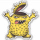 Cooler Monsteraufkleber mit einer verrückten, glänzenden Zeichentrickdarstellung, die in digitaler Tinte in gelb und blau-grün gezeichnet wird.