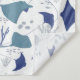 Coole Tapisserie mit modernen Rochen unter Wasser. Blaue Rochen und Fische, die in einem Korallenriff schwimmen. Schöne, blau-weiße Tapisserie für das Strandhaus, die Zuhause an der Küste, oder um ein wenig Ozean Stil in jeden Bereich bringen.