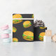 Cooles und lustiges Hammermuster dunkelgraues Wrapping Paper. Coole und lustige Burgermuster nach Maß gefertigte Geschenkartikel. Yummy Vektorgrafik mit Toasty Sesam Bun mit Fleisch, Salat, Tomaten und Käse.