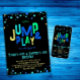 Cette invitation à la fête d'anniversaire de trampoline saut & play fait partie d'un ensemble d'accessoires de fête d'anniversaire assortis. Votre petit va profiter de chaque moment magique de sa journée spéciale. Cette décoration se décline dans différentes teintes de bleu, vert et jaune. Vous trouverez des couleurs vives, des polices faciles à lire et beaucoup d'espace pour ajouter toutes vos informations uniques. Pour tout besoin de design spécial, ou accessoires de fête unique, n'hésitez pas à contacter le concepteur, en envoyant un courriel à choosehappystudio@yahoo.com Graphiques par : https://rb.gy/z319y