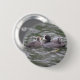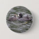 Dieser Knopf zeigt ein Foto eines Coot, der einen Fisch zu seinem hungrigen Küken füttre. Der erwachsene Vogel hat ein weißes Pflaster auf dem Kopf und ein rotes Auge, während das niedliche kleine Küken flüssig und grau ist.