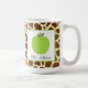 Une tasse de professeur comportant une illustration d'une pomme verte à l'intérieur d'un carré blanc avec l'équilibre vert. L'arrière - plan est copie de girafe.