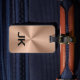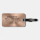 Elegant monogrammed copper brown metallic luggage tag with a stainless steel appearance. Customize with your information in black text. Please note, the material is not actual stainless steel but rather an image resembling steel.