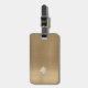 Modern exclusive looking luggage tag on a beige tan sleek metallic like texture background with geometric diamond shaped monogram. Personalize it with your name, monogram, and details on both sides!