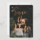 Frag deinen Freunden und Verwandten, mit diesen modernen und stilvollen Fotos Save the Date Einladungen mit Pinsel-Schrift-Typografie in einem Imitat Kupferfolienstil und anpassbarem Text dein bevorstehendes Hochzeitsdatum retten.