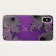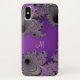 Caisse pourpre perlée de l'iPhone X de monogramme de fractale. Pourpre et noir violet, mélangé avec de l'argent, l'or et la lavande, cas de conception de fractale de Mandelbrot. Complétez votre initiale à l'invite pour personnaliser et customiser de toute façon vous aimez.