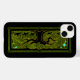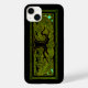 Entourée d'une bordure de noeuds celtiques, d'une forêt stylisée et mystique et de cavaliers aux tons verts.