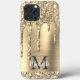 Elégante, moderne, parties scintillant d'or girly goutte sur mesure nom personnalisé et coque iphone monogrammed. Ce design présente des gouttes brillantes de parties scintillant dorée sur arrière - plan métal brossé or jaune avec personnalisation monogramme initial et modèle texte de prénom. Un cadeau féminin parfait pour les filles et les femmes qui aiment des choses glamour plutôt tendance. Si vous avez besoin d'aide ou d'articles correspondants, veuillez me contacter.