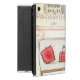© Andrea Laliberte/Apple sauvage. Une image d'une femme tenant un verre à moitié plein de vin. La femme utilise une robe et un casquette noirs, et a un sac rouge.