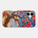 Cette boîte téléphonique a un arbre à fleurs rose dessus.