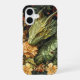 Coque iPhone 16 Dragon vert enchanté avec élégant tableau floral