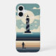 Stylized lighthouse on a retro geometric base with an ocean palette.