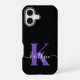 Coque iPhone 16 Monogramme de script moderne violet noir