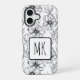 Coque iPhone 16 Monogramme floral noir et blanc moderne