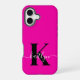 Coque iPhone 16 Monogramme noir rose chaud moderne