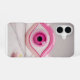 Coque iPhone 16 Pink Evil Eye Amulet on Marble Surface