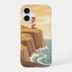 Vintage lighthouse on coastal cliffs with a simple, nostalgic style.