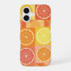 Retro pattern featuring stylized citrus fruits with soft colors and geometric shapes.