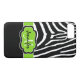 Ce coque personnalisé en noir et blanc Coque-Mate personnalisé iPhone 7 a un motif arrière - plan zèbre imprimé rayé amusant avec une bande verte et noire pour ajouter votre nom, initiales, monogramme ou autre texte à. Ce nouveau coque moderne et branché fait une déclaration chic pour le jeune fashionista branché ! Si vous avez besoin d'aide, envoyez un courriel à niteowlstudio@gmail.com.