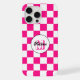à damiers carré chaud rose blanc rétro Monogram coque iphone. Personnalisez avec votre initiale et votre nom personnalisés. Cool retro à damiers géométrique carré motif design. Chèque moderne carrelage vintage blanc et rose chaud.