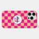 Coque iPhone à damiers carré pêche rose chaud rétro Monogramme