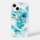 Design coque iphone moderne et personnalisé avec un abstrait turquoise et blanc mélange de peinture liquide arrière - plan avec votre nom et initiale écrit dans un script sophistiqué et une police sans serif moderne. Le texte est entièrement personnalisable.