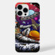 Art vectoriel original d'un astronaute ayant du fromage de lune et passant une tranche à un alien. Créé dans un vecteur.