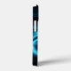 Coque iphone noir avec une conception de symbole de danger biologique bleu électrique.