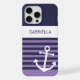 Simple ancre contemporaine de navire, sur un motif classique et chic bleu marine et violet violet violet violet violet couleur rayures. Avec espace pour personnaliser ou customiser avec un nom, des initiales ou un monogramme de votre choix sur un arrière - plan de couleur blanche. Belle couverture moderne et cool pour le brancheur tendance et amateur d'art branché, amoureux de motifs artistiques qui veut protéger leur téléphone de la poussière et de la saleté, de l'usure et de la déchirure. Cette conception est disponible en coques de téléphones cellulaires Apple iPhone 6, 7 et 8 Plus, 10 ou X, XR, XS, 11, 12, 13 Mini, 14, 15 Plus et Pro Max. Montrez votre style, regardez à la mode, et sentez élégant avec un design unique sur un accessoire mobile de votre choix.