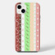 Boho étui de téléphone mignon et blanc avec pois rose, mauve, marron, bordeaux et sauge vert et motif rayures. Des couleurs chaudes et terreuses.