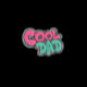 Design de texte coloré avec les mots "papa Cool" dans une police joueuse comme une bulle. Les lettres sont à l'ombre rose et turquoise, encadrées de points blancs, dressées contre un arrière - plan sombre.