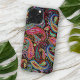 Bleu clair contemporain, violet clair, vert citron vif pastel, et fuchsia rose fuchsia, violet et vibrante aqua couleur turquoise imaginaire paisley tourbillonne motif sur un arrière - plan noir. Belle couverture moderne et cool pour le brancheur tendance et amateur d'art branché, amoureux de motifs artistiques qui veut protéger leur téléphone de la poussière et de la saleté, de l'usure et de la déchirure. Cette conception est disponible en iPhone 6, 7, et 8 Plus, 10 ou X, XR, XS, 11, 12, 13 Mini, 14, et 15 coques de téléphonie mobile Plus Pro Max. Montrez votre style, regardez à la mode, et sentez élégant avec un design unique sur un accessoire mobile de votre choix.