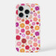 Colorful flower pattern in yellow, orange, pinks, lilac and reds on a cream color background.