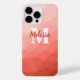 Rose corail maille géométrique ombre motif coque iphone Monogramme. Personnalisez le cadeau de femme d'accessoires tendance unique avec son nom et son nom. Joli Triangle géométrique mesh ombre couleur de l'année rose orange vivant de la géométrie de corail pour elle.