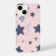 cute pastel phone case with navy stars and bleu bows on a soft pink backround a dreamy girly design that's both stylish and productive -perfect for aesthetic lovers