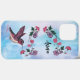 Personnalisez ce coque iphone de colibri unique "One of a Kind" ! Il présente un colibri adorable siroter le nectar de grandes fleurs roses et violettes... sur un Arrière - plan d'aquarelle rose, violet et bleu! Peinture d'art original par l'artiste Kerry Miller.