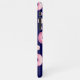 Douceurs - Les beignets aux glaçons roses, les cupcakes aux tasses en papier rose foncé et blanc avec glaçage rose pâle ou blanc et surmontés de fraises ou de fleurs glacées et de macarons rose pâle dans un motif extensible sur bleu très foncé.