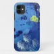 Montre de poisson rouge alors que les méduses deviennent jaunes dans ce beau monde bleu, abstrait, sous-marin !