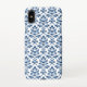 Coque iPhone Feuille Damask Pattern bleu foncé sur blanc