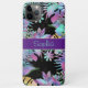 Feuilles tropicaux tendance iridescente sur arrière - plan noir avec bande violette royale et garniture or avec do-it-yourself nom turquoise ou monogramme. Cliquez sur "Personnaliser" pour changer facilement les couleurs et les styles de type. Version 2.