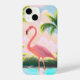 Coque iPhone Flamant rose rose dans le paradis tropical Retro B