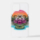 Une scène de coucher de soleil sereine et captivante avec une belle fleur de lotus blanc aux délicates notes roses, flottant gracieusement au centre d'un étang tranquille. Le lotus est entouré de salades verdoyantes, et l'eau calme reflète les étonnantes couleurs du coucher du soleil, reflétant des oranges douces, des roses et des violets. Dans l'arrière - plan, différents plantes et brosses créent un cadre naturel paisible, tandis que quelques nuages clairsemés apportent de la profondeur au ciel lointain. L'ambiance générale évoque un sentiment de tranquillité et de beauté naturelle, avec le lotus comme point central de sérénité au milieu des teintes vibrantes du soleil couchant.