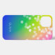 Un dégradé coloré mêle bleu vif, vert, jaune, orange et rose avec des éclats de bokeh en blanc. Personnalisez avec votre nom ou vos initiales en lettres blanches sans police.