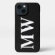 Personnaliser, personnalisez monogramme, initiales lettre noir et blanc minimaliste minimaliste moderne élégant classique chic coque iphone élégant. Texte blanc personnalisable, arrière - plan uni noir.