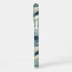 Make a statement with this iphone 16 pro max phone case that features rolling Japanese waves in multiple shades of teal blue. It's modern yet traditional. The pattern represents surges of good luck, peace, and eternal resilience. It becomes uniquely yours with your name in a CAP font in white on dark teal.