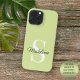 Coque de téléphone portable girly contemporain avec la place de customiser avec le nom, monogramme, ou initiales de votre choix sur un joli arrière - plan de couleur vert citron en été chartreuse. Belle couverture moderne et cool pour le brancheur tendance et amateur d'art branché, amoureux de motifs artistiques qui veut protéger leur téléphone de la poussière et de la saleté, de l'usure et de la déchirure. Cette conception est disponible dans les coques de téléphones cellulaires Apple iPhone 6, 7 et 8 Plus, 10 ou X, XR, XS, 11, 12 et 13 Mini, 14, 15 Plus et Pro Max. Montrez votre style, regardez à la mode, et sentez élégant avec un design unique sur un accessoire mobile de votre choix.