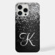Coque iPhone Monogramme à étincelle noire à Parties scintillant